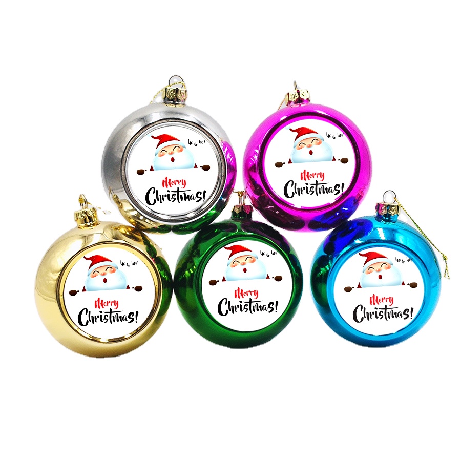 Topjlh New Arrival 8cm Plastic Colorful Christmas Ornament Balls Sublimation LOGO Hanging Blank Christmas Ball & Tree Decoration
