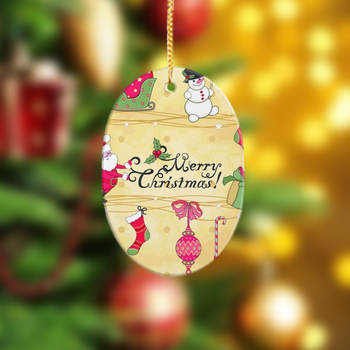 Topjlh Artisan Ceramic Christmas Decoration Gold Trimmed Oval Shape Ornament for Festive DIY Projects Holiday Gifting