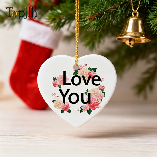 Topjlh Sublimation Custom Christmas Ceramic Ornaments for Corporate Gifts, Wholesale Supplier of Printable Xmas Decorations