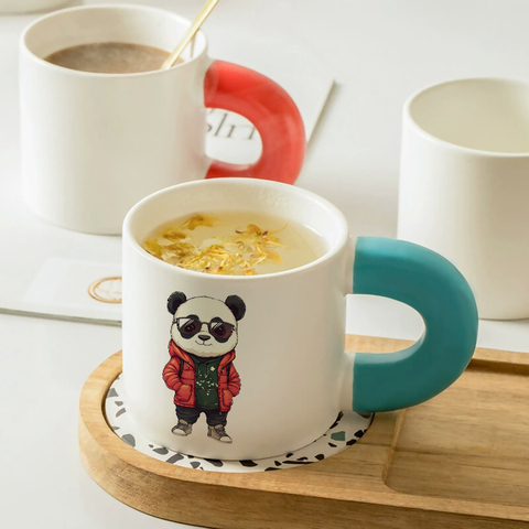 Topjlh Custom Logo Ceramic Mug 330ml Sublimation Blank with Pop-Colored Handle for Bespoke Birthday Presents Corporate Swag