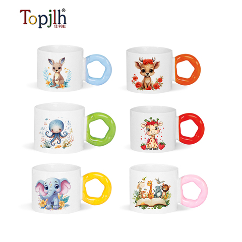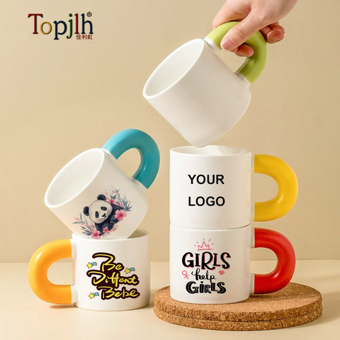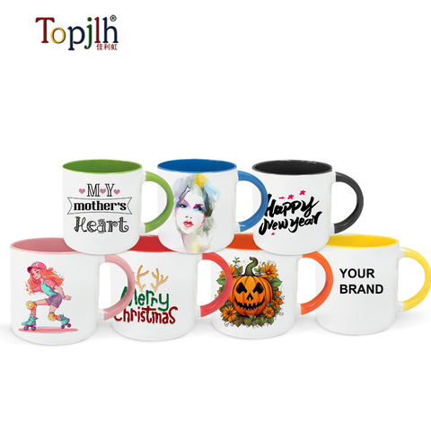 Topjlh Sublimation Blank Mug 330ml with Color Handle Custom LOGO Wholesale Ceramic Cup DIY Gift Personalized Design Drinkware
