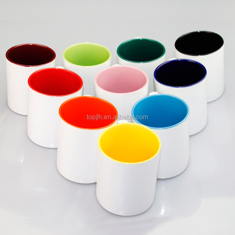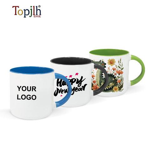 Topjlh High Quality Custom logo 11oz Sublimation Blanks Ceramic Mug Coffee Cups Inner Colored Mugs with Handle Promotional Gift