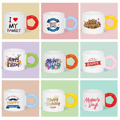 Topjlh Sublimation Blank 240ml Ceramic Mugs Colorful Handgirp Coffee Tea Cup for Home Christmas Supplies Cafes DIY Gift