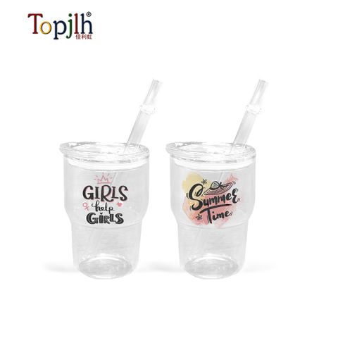 Topjlh Custom Sublimation Blank 3oz Shot Glass With Lid and Straw Cute Mini 3oz Glass Tumbler
