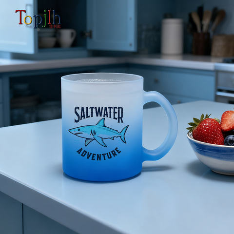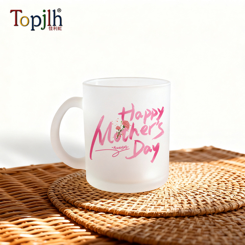 Topjlh Sublimation Blank 11oz Frosted Glass Coffee Mug Scratch-Resistant Handle High-Definition Print for Corporate Gift