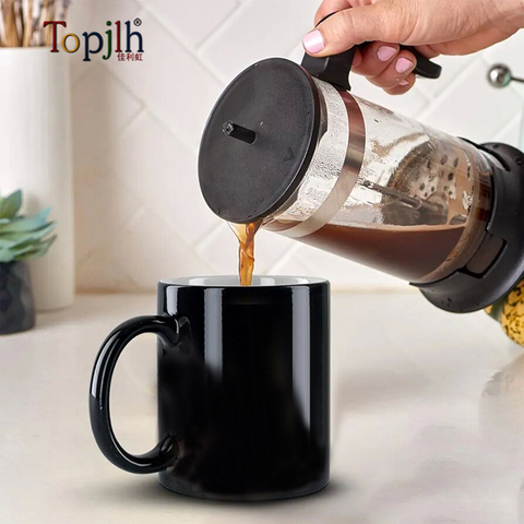 Topjlh Custom Logo Sublimation 11oz Blank Black Ceramic Magic Cup Milk Mugs Color Changing Coffee Mug for Home Office
