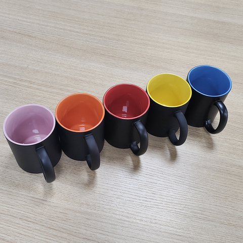 Topjlh Sublimation Mug Custom Logo Blanks Inside Colorful 11oz Ceramic Color Changing Magic Mugs Black Coffee Mugs