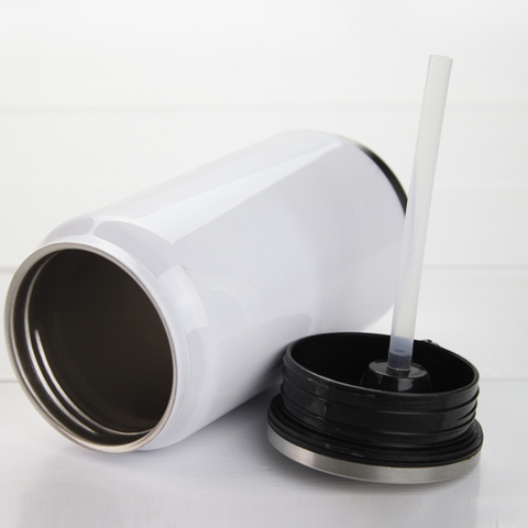Topjlh Double Wall Sublimation Cans Blank 304 Stainless Steel Vacuum White Cola 12oz Custom LOGO Soda Can Tumbler with Lid Sport
