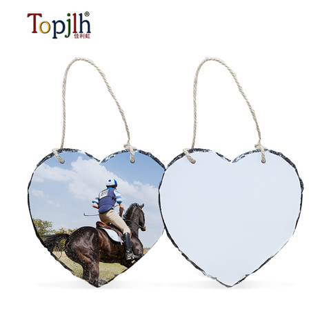 Topjlh Sublimation White Blank Heart Rock Photo Slate Custom Logo Hanging Stone Photo Slate Frame for Graduation Gifts