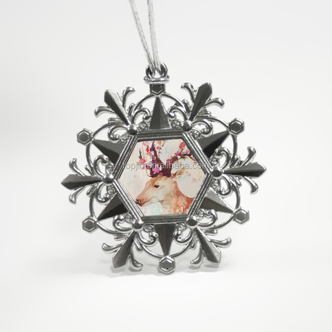 Custom Logo Zinc Alloy Snowflake Ornaments Topjlh Silver-Printed Metal Creations for Holiday Gifting & Home Styling